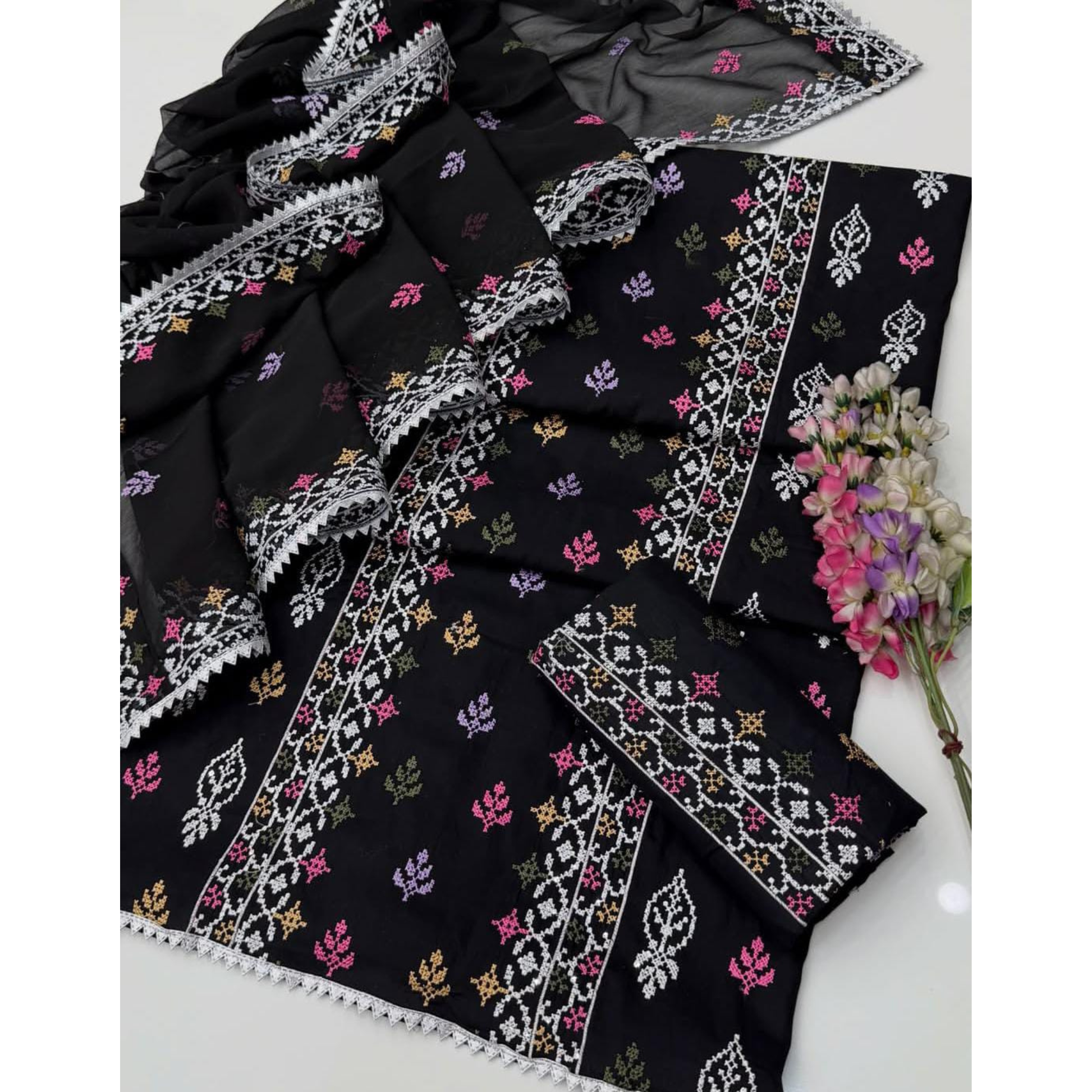 - CHIFFON DUPATTA WITH 4-SIDE BORDER WITH GOTTA LACE